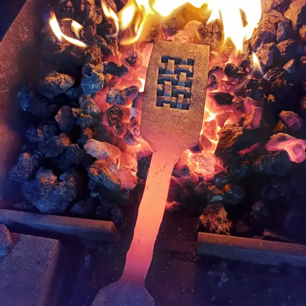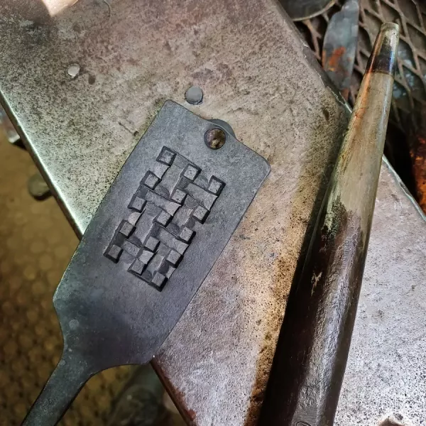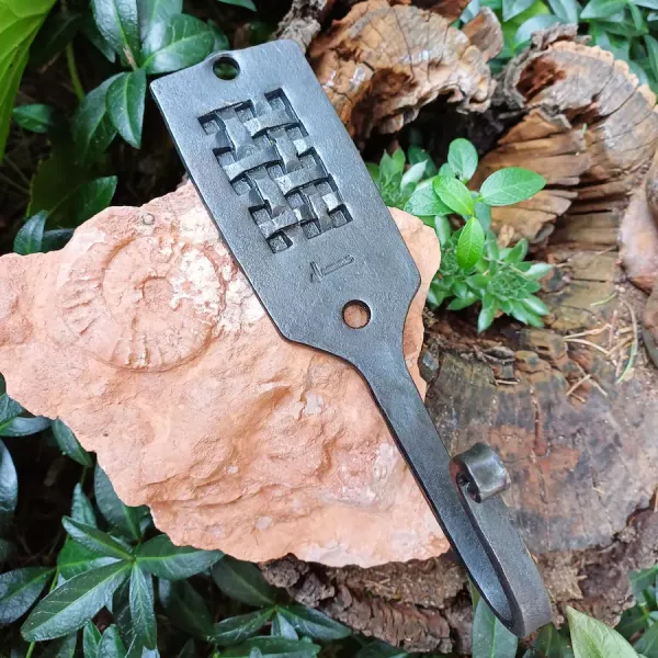 🔥Hier ist der fertige „Basket Weave“ bzw. „Celtic Knot“ Haken – die Löcher wurden traditionell heiß gestanzt.