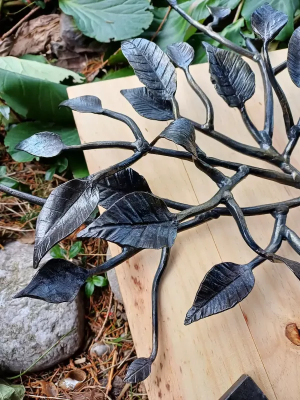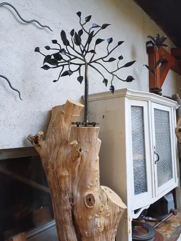 Ich kann mich noch gut an meine ersten Schmiedeübungen erinnern. Die erste war Spitzen zu schmieden, und die zweite ein Blatt. Seither übe ich mich immer wieder darin, und bringe es nicht über's Herz die verbrannten, eingerissenen, asymmetrischen oder für mich nicht so hübschen Blätter wegzuwerfen....SO ENTSTAND die Idee des "Tree of Misfits". Und das schöne daran, er wird nicht aufhören zu wachsen.